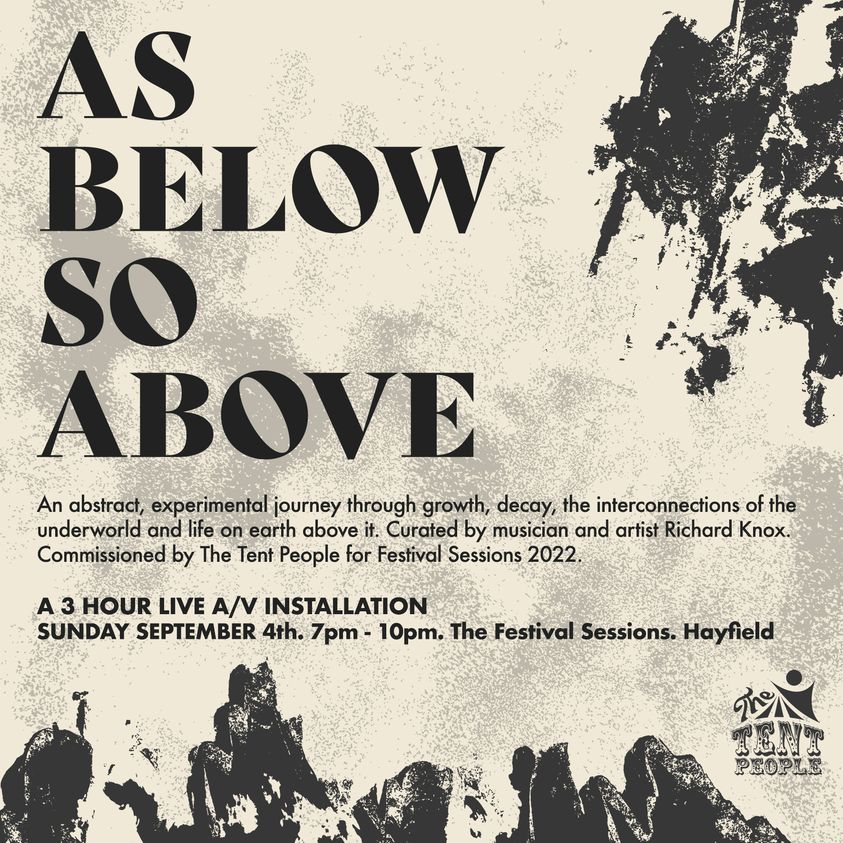 “We absolutely could not be more excited to tell you about our Festival Sessions finale piece. This amazing, immersive, installation has been curated by our pal and creative wonder, Richard Knox and commissioned by us to take you on an experimental journey through growth, decay, the interconnections of the underworld and life on earth above it……